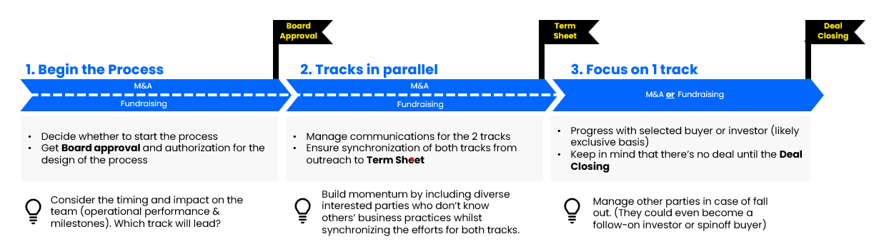 Dual-Track is a spectrum in-between exclusively considering Fundraising or M&A