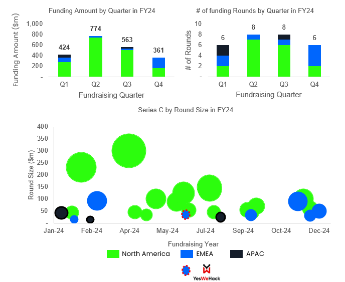 With our expertise in Cyber - most recently having led YesWeHack's €26m Series C funding round last year - we wanted to take a closer look at the global landscape and where the sector is heading. Despite Europe’s world-class talent pool, the significant funding gap with North America threatens long-term growth. And yet... Q4 has shown strong news in terms of Series C in Europe! Something to celebrate as the continent has struggled to grow the later stages of tis ecosystem historically. Our proprietary analysis highlights the need for Europe to take a more coordinated investment approach - both to keep its most innovative companies from moving to the US and to turn cybersecurity into a key driver for technological leadership.