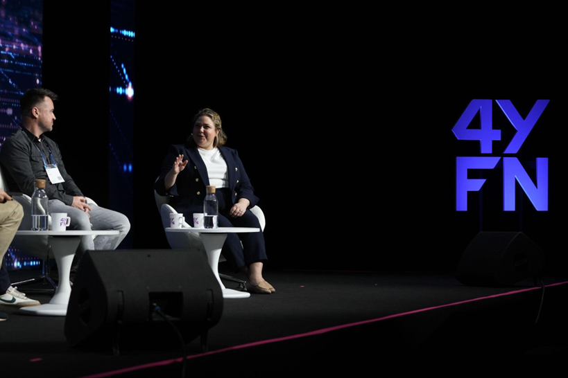 Claire Trachet speaking on the panel at 4FYN, Barcelona 2025