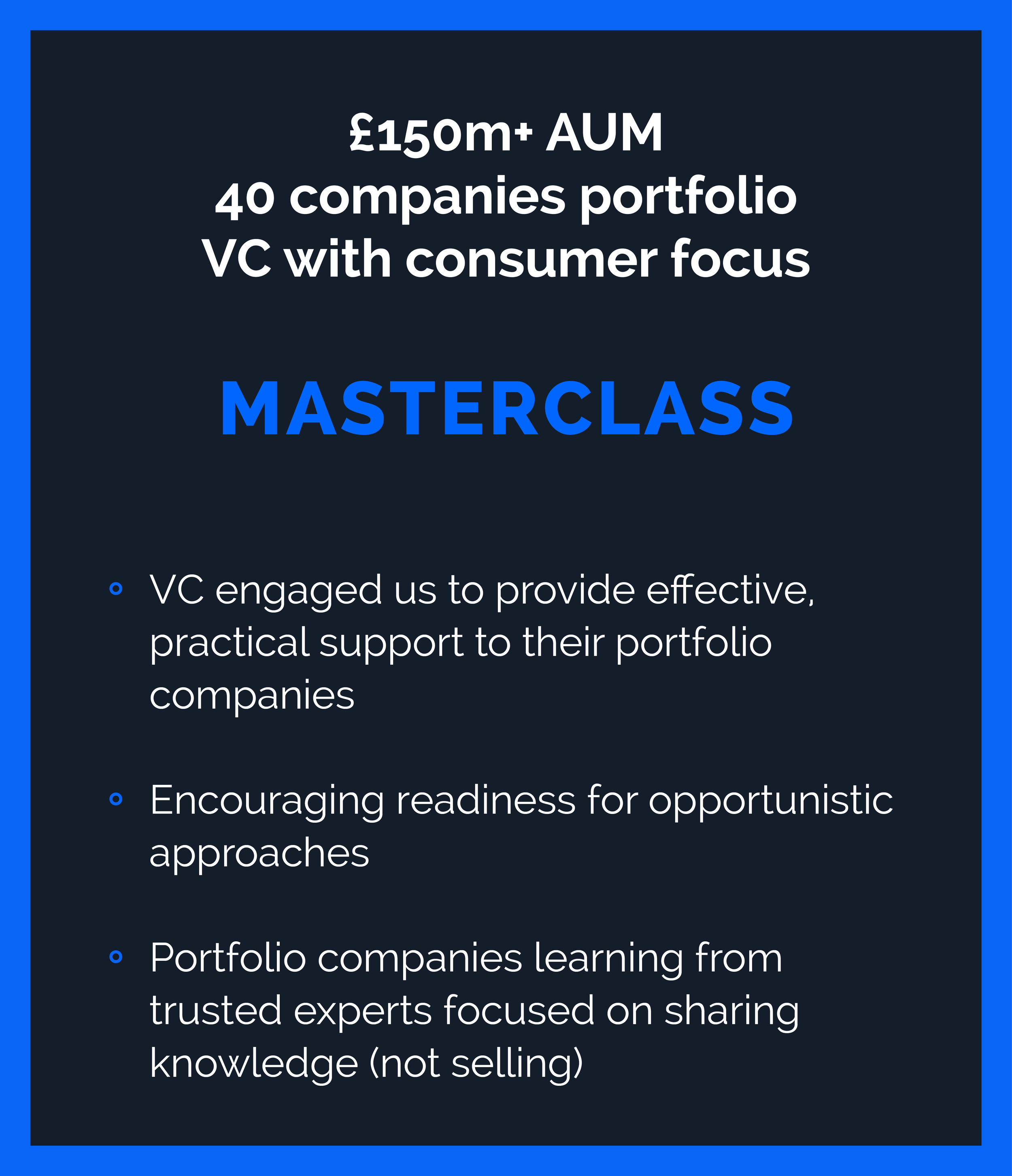 That methodology enables us to improve the foundations of the company while rallying the team, making it ready for high growth as well as to seize an opportunistic fundraising/exit.